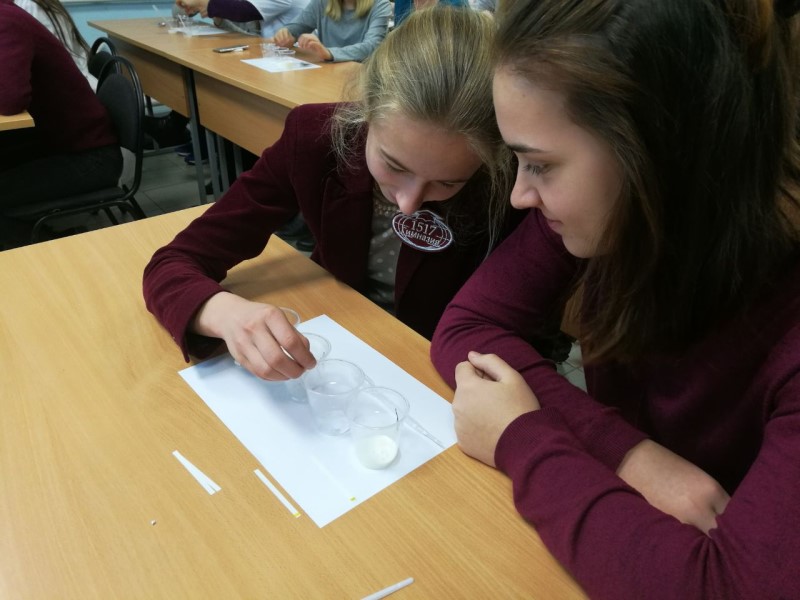 По окончании лекции состоялась практическая работа, на которой учащиеся опытным путем установили, как влияют различные среды на действие фермента слюнных желез, и увидели результаты действия амилазы.