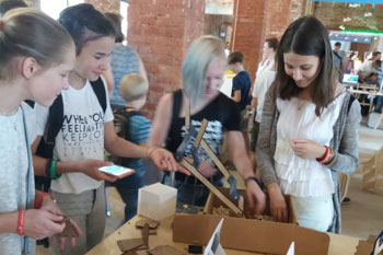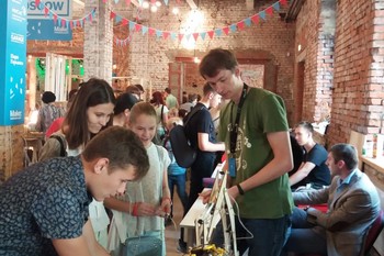 На фестивале цифрового производства Maker Faire Moscow наши ученики смогли увидеть проекты изобретателей в других промышленных сферах – и даже поуправлять ими! Здесь была представлена целая коллекция удивительных устройств: подъёмный кран, работающий с помощью гидравлической системы шприцев и капельниц, набор цветочных горшков, при перестановке которых можно получить разнообразные фигуры, механизм, рисующий всевозможные фигуры и управляемый нажатием кнопок, и многое, многое другое.