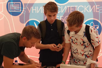 В «научных» шатрах ребята собирали и запускали ракеты, которые поднимались на высоту более 20 метров, играли в робофутбол, управляя роботами-игроками с помощью мобильных телефонов, упражнялись в работе с 3D-ручкой и наблюдали за серией химических экспериментов.
