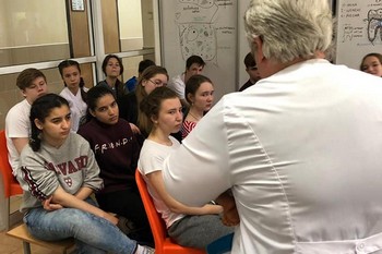 Работали с участниками практики "ПОЛИклиника" старшая медицинская сестра и педагог Кузнецова Татьяна Петровна вместе с курсантами медицинского класса.