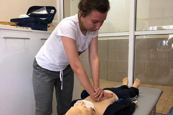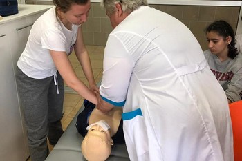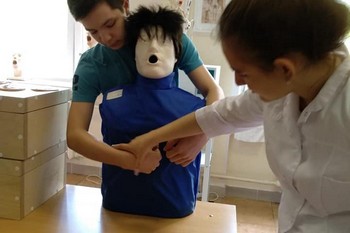 На занятии уделили внимание основным приемам остановки кровотечений, затронули вопросы транспортировки при переломах и в других экстренных случаях.