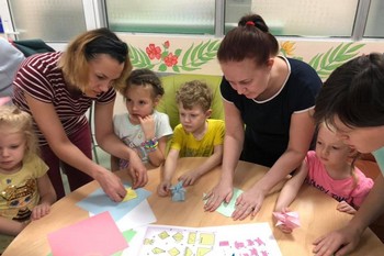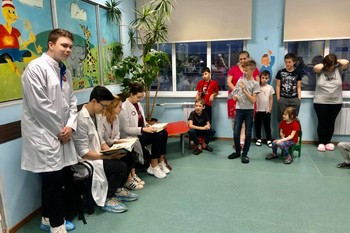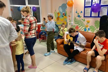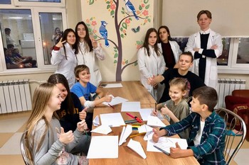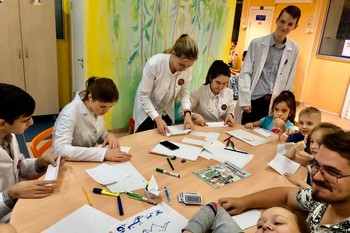 Школьники играли с маленькими пациентами, читали им сказки, складывали оригами, рисовали, играли на гитаре.