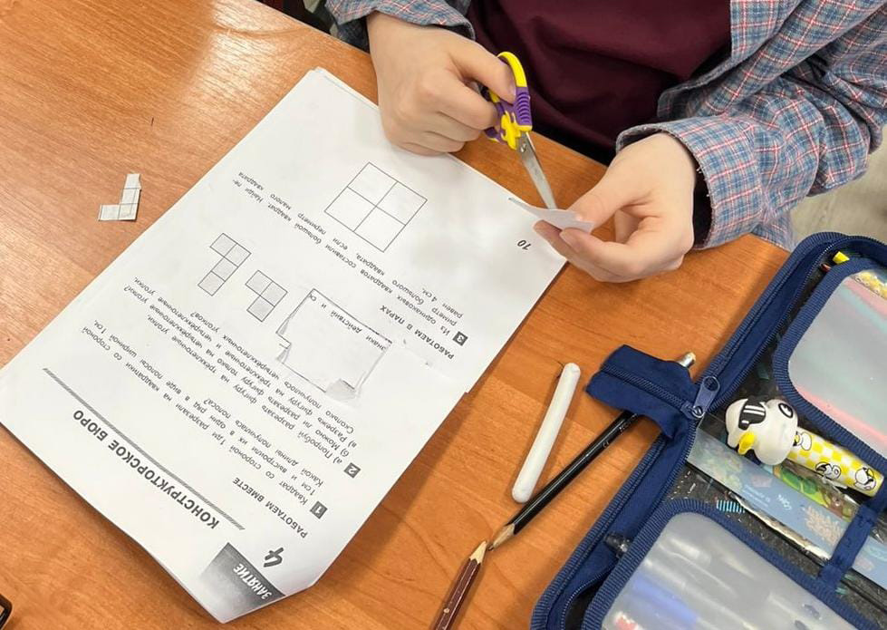 Педагог: «Давайте проверим, в чем же тут магия? Возьмите свои листочки с таким же квадратом и цветные карандаши».