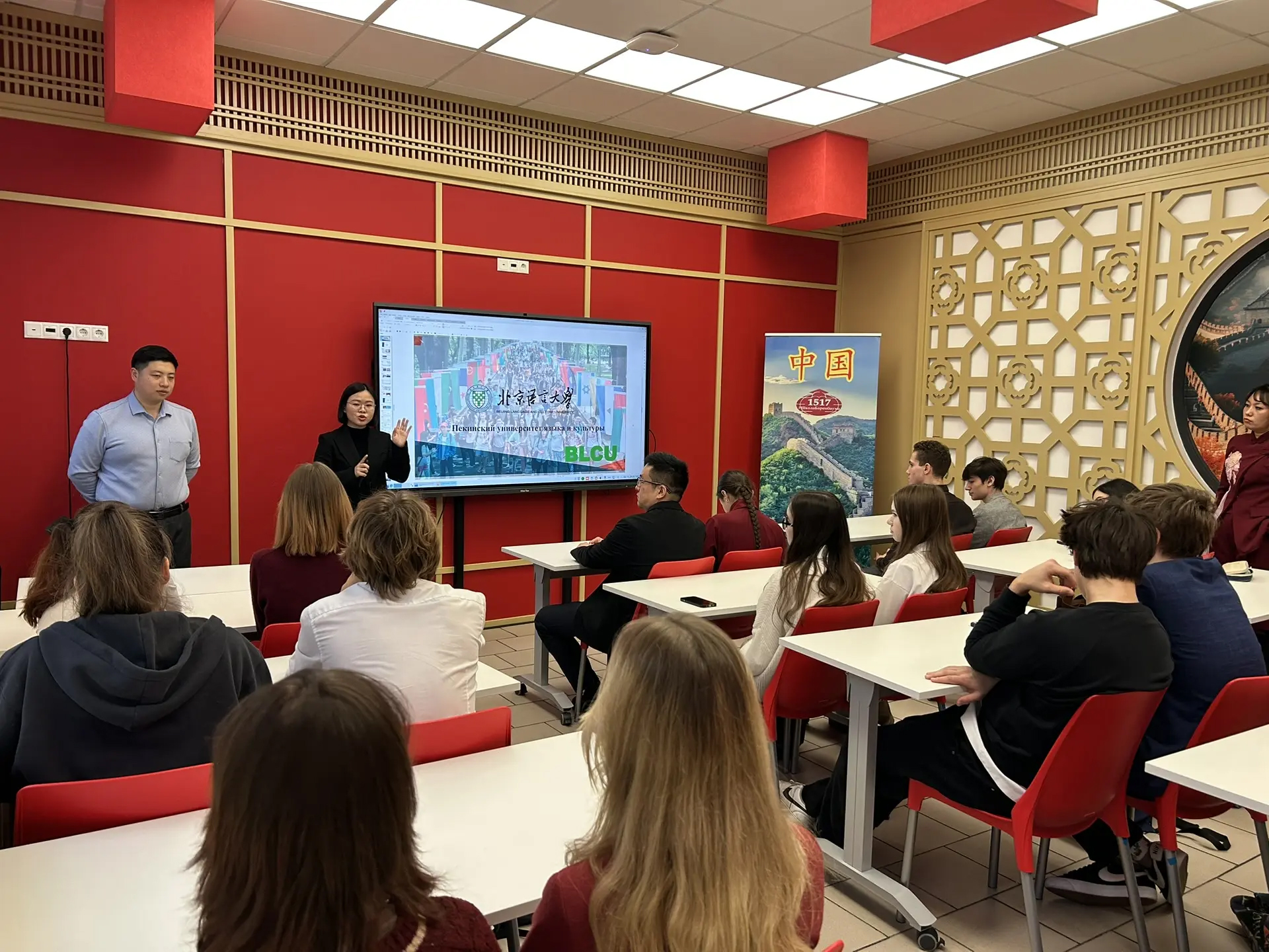 В беседе с преподавателями Пекинского университета старшеклассники рассказали о выборе своей будущей профессии, продемонстрировали знания языка, интерес к культуре Поднебесной, чем произвели впечатление на господина Вана, главу международного офиса Пекинского университета языка и культуры